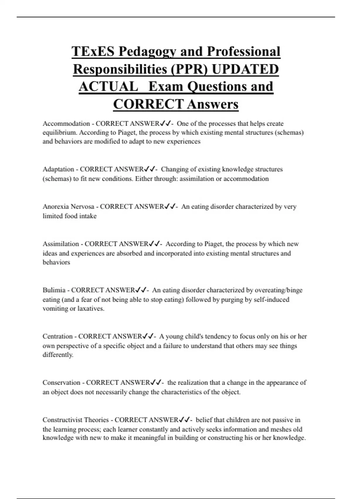 Adaptation - CORRECT ANSWER✔✔- Changing of existing knowledge structures