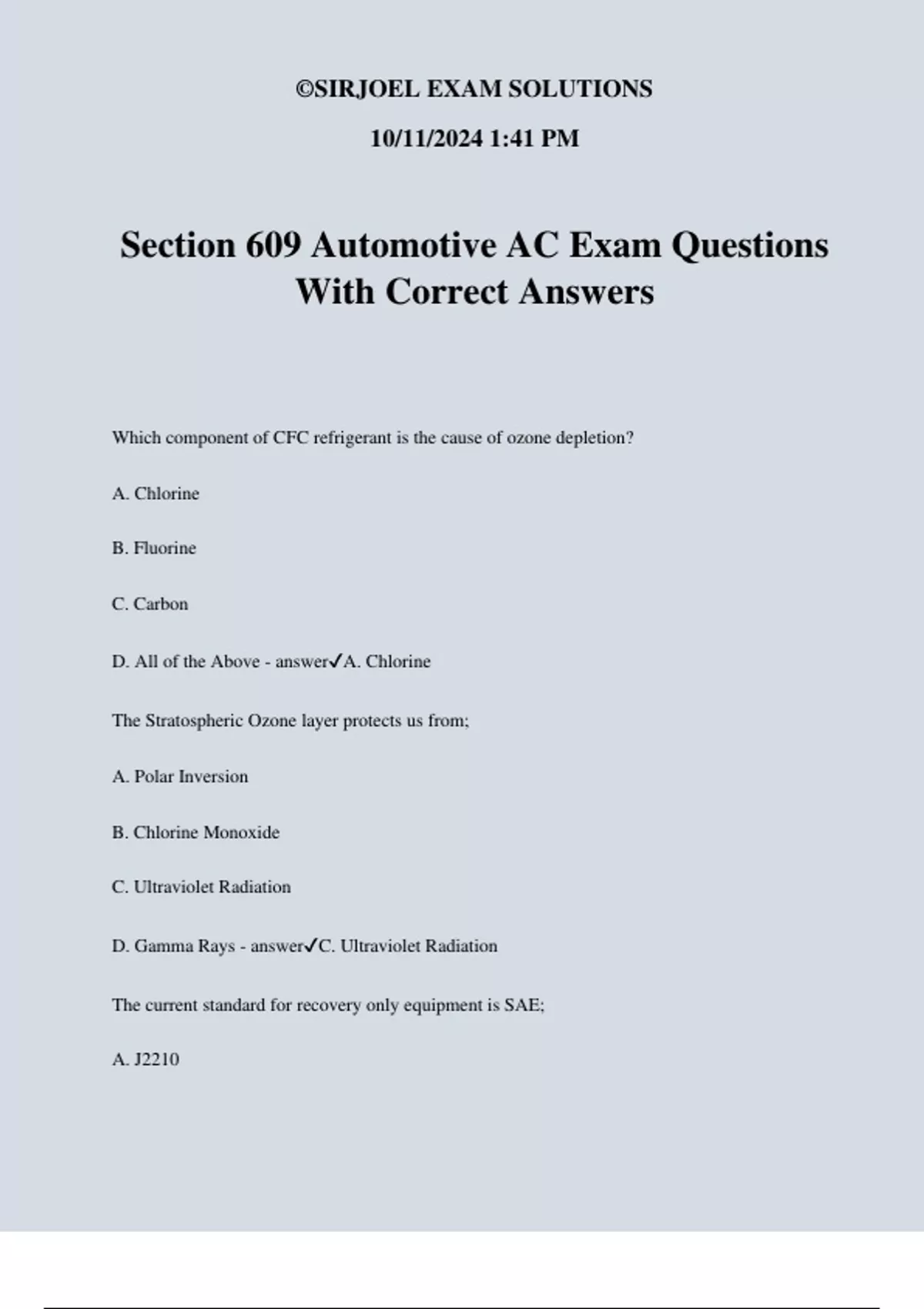 Section 609 Automotive AC Exam Questions