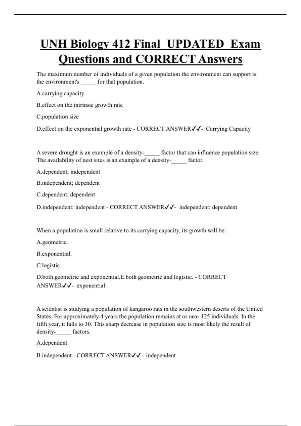 D.effect on the exponential growth rate - CORRECT ANSWER✔✔- Carrying Capacity