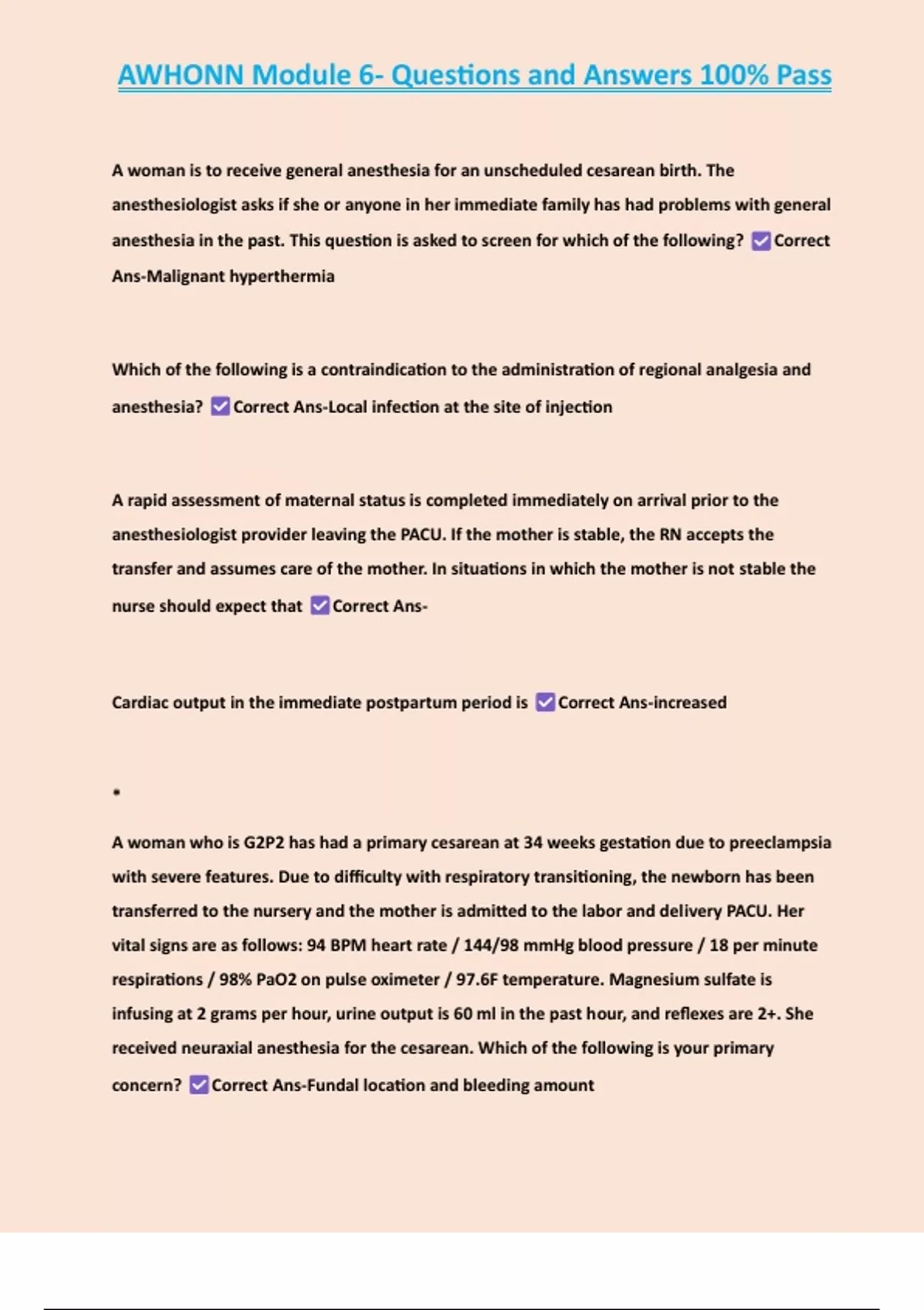 received neuraxial anesthesia for the cesarean. Which of the following is your primary