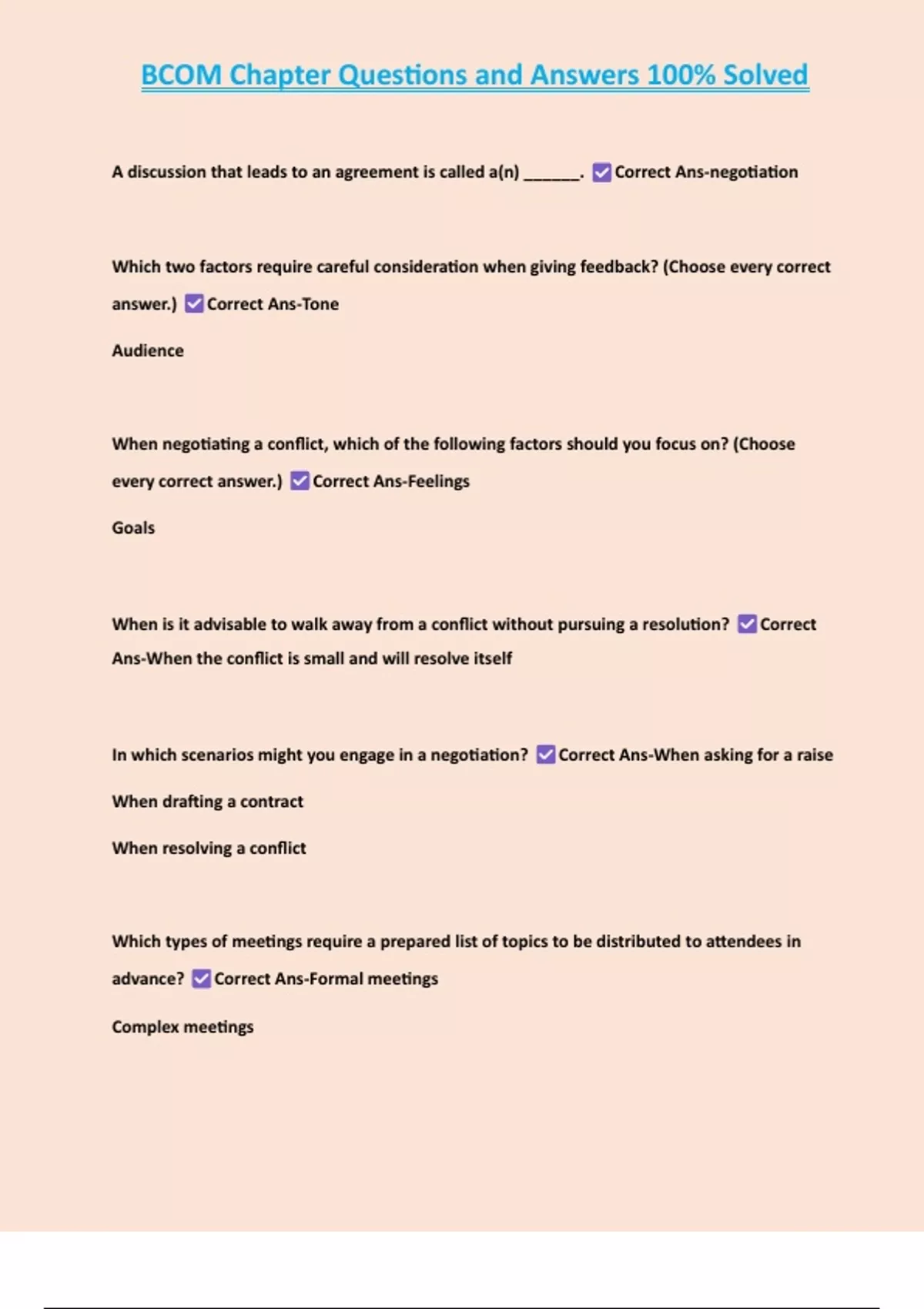 , BCOM Chapter Questions and Answers 100% Solved