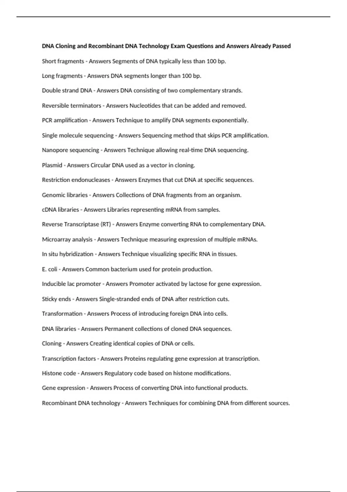 Recombinant DNA technology - Answers Techniques for combining DNA from different sources.