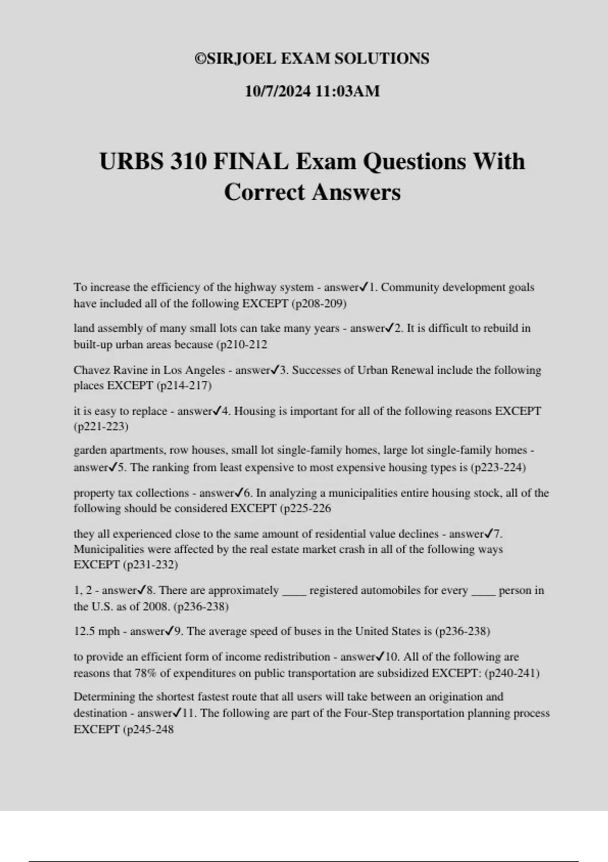 URBS 310 FINAL Exam Questions With