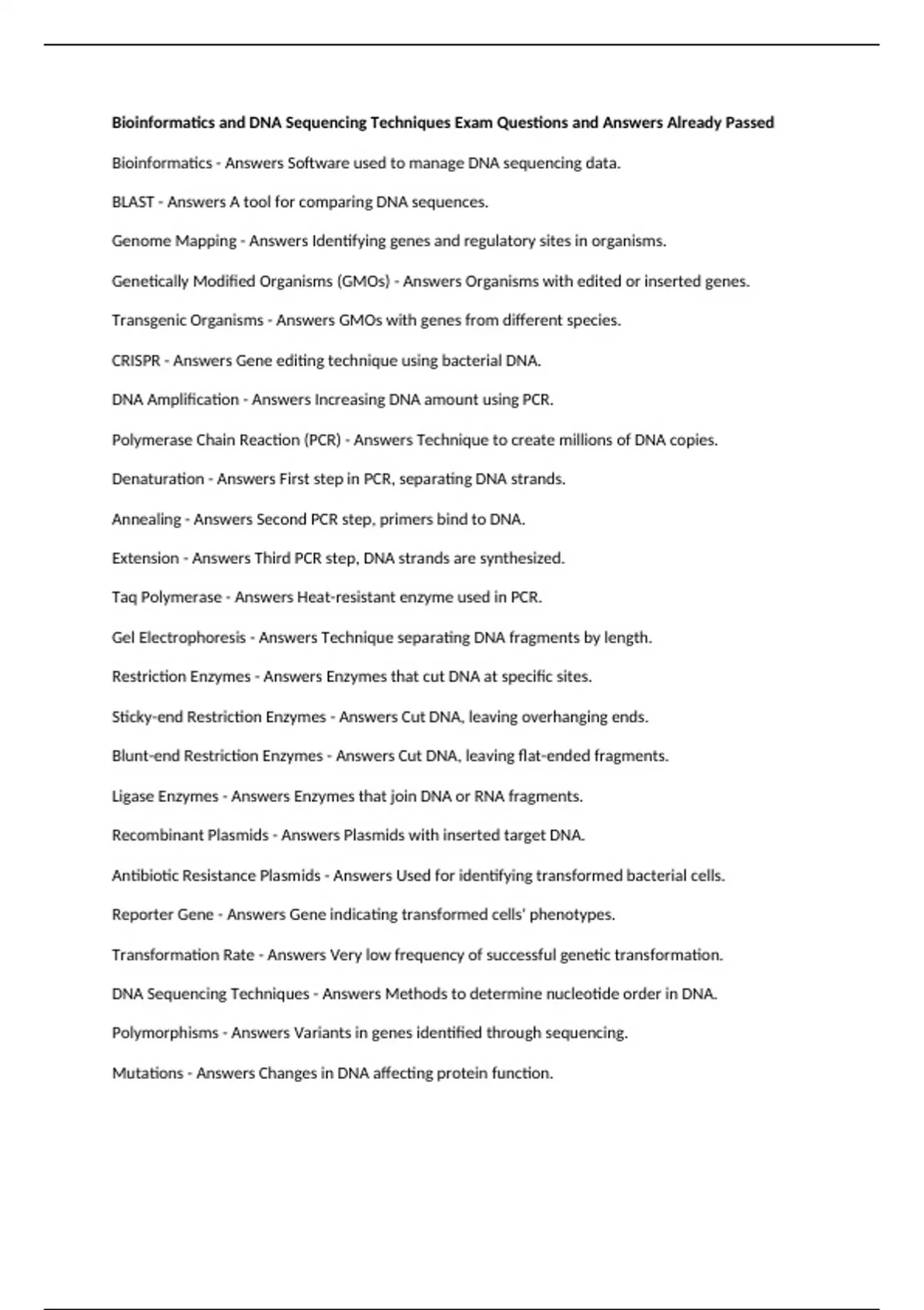 CRISPR - Answers Gene editing technique using bacterial DNA.