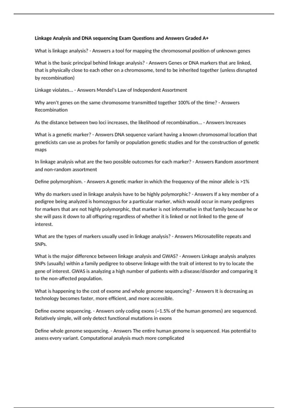 In linkage analysis what are the two possible outcomes for each marker? - Answers Random assortment