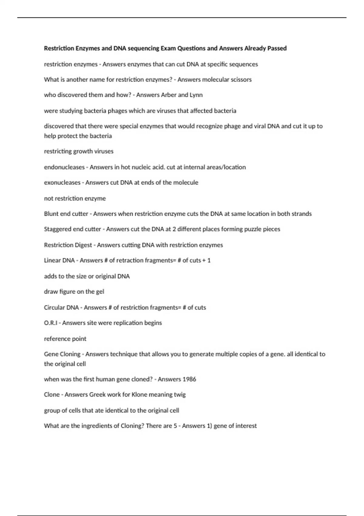 Restriction Digest - Answers cutting DNA with restriction enzymes