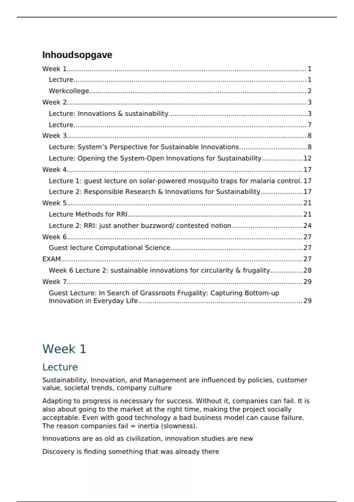 Summary/lecture notes of the Sustainable Innovation Management lectures. Including powerpoint pictures.