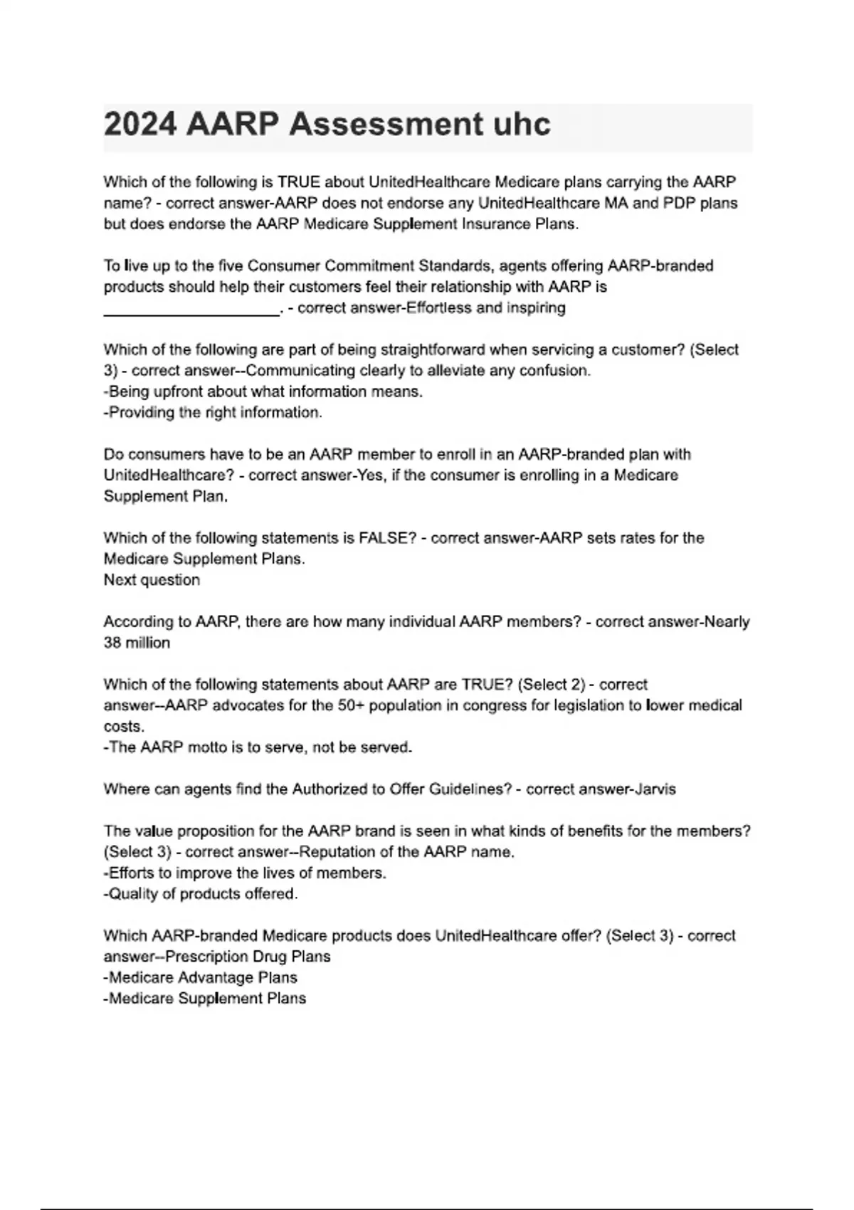 2024 AARP Assessment uhc