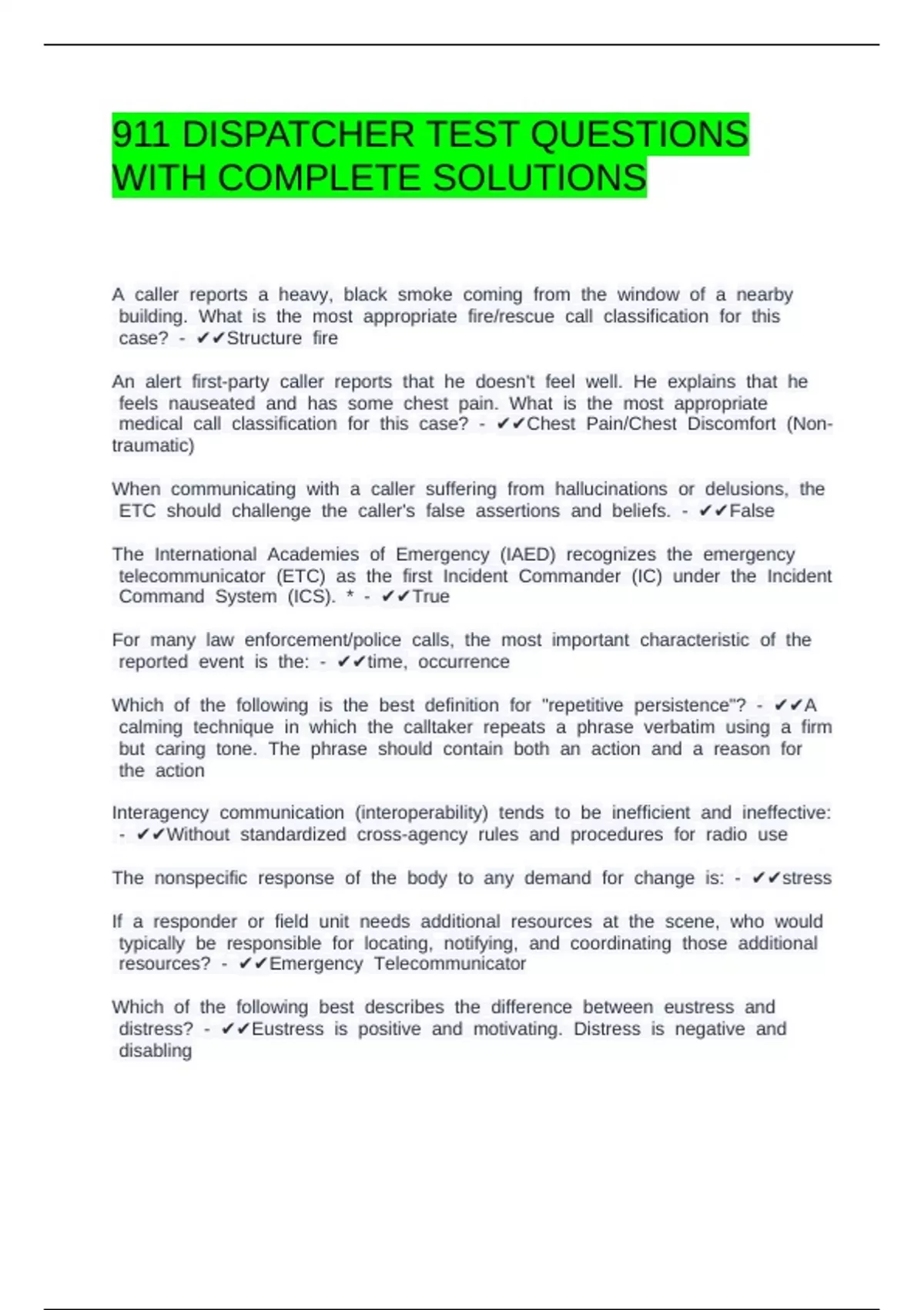 911 DISPATCHER TEST QUESTIONS WITH COMPLETE SOLUTIONS.