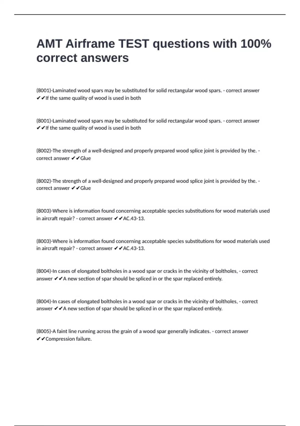 AMT Airframe TEST questions with 100% correct answers