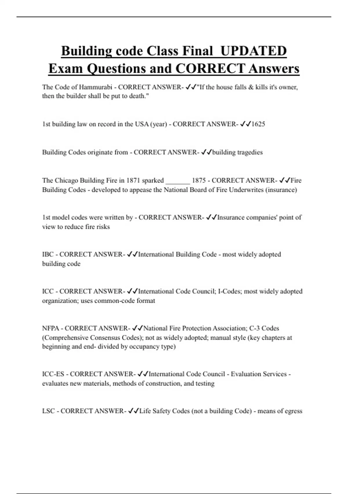 Building Codes originate from - CORRECT ANSWER- ✔✔building tragedies