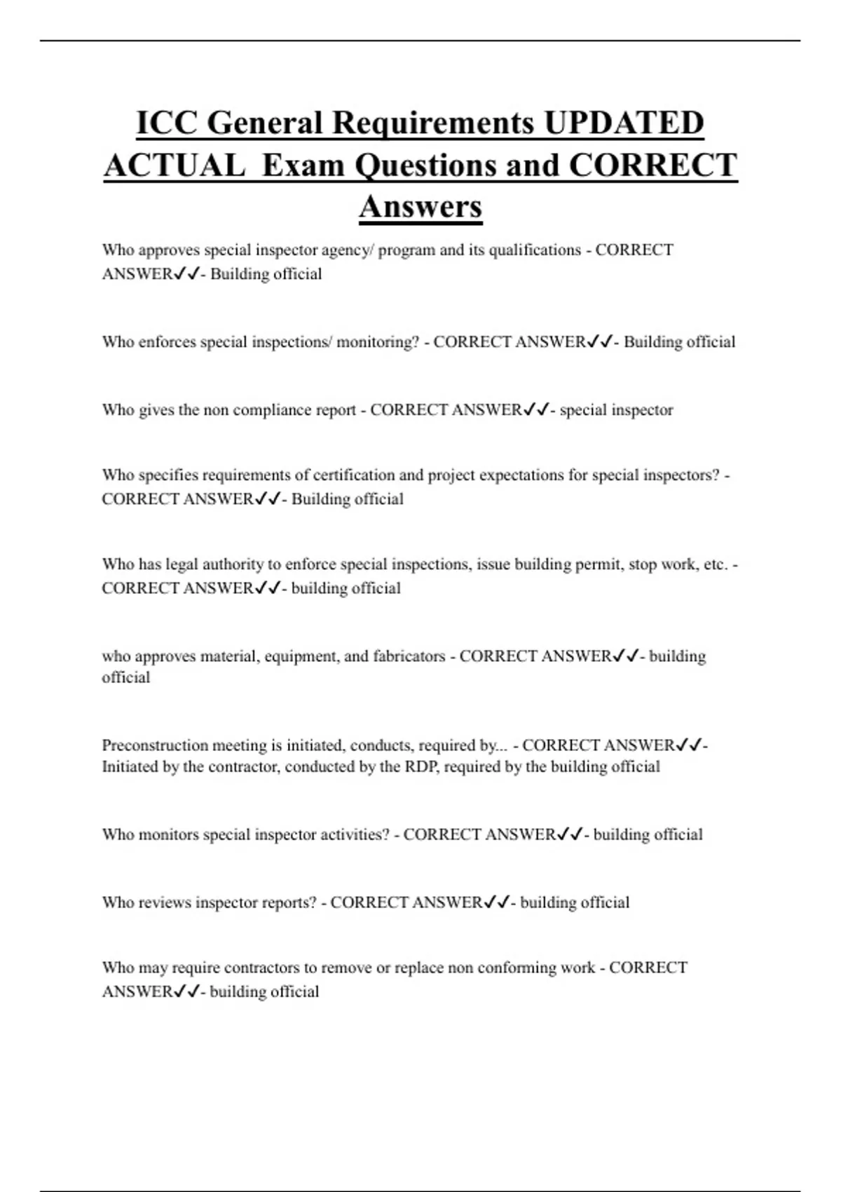 CORRECT ANSWER✔✔- building official