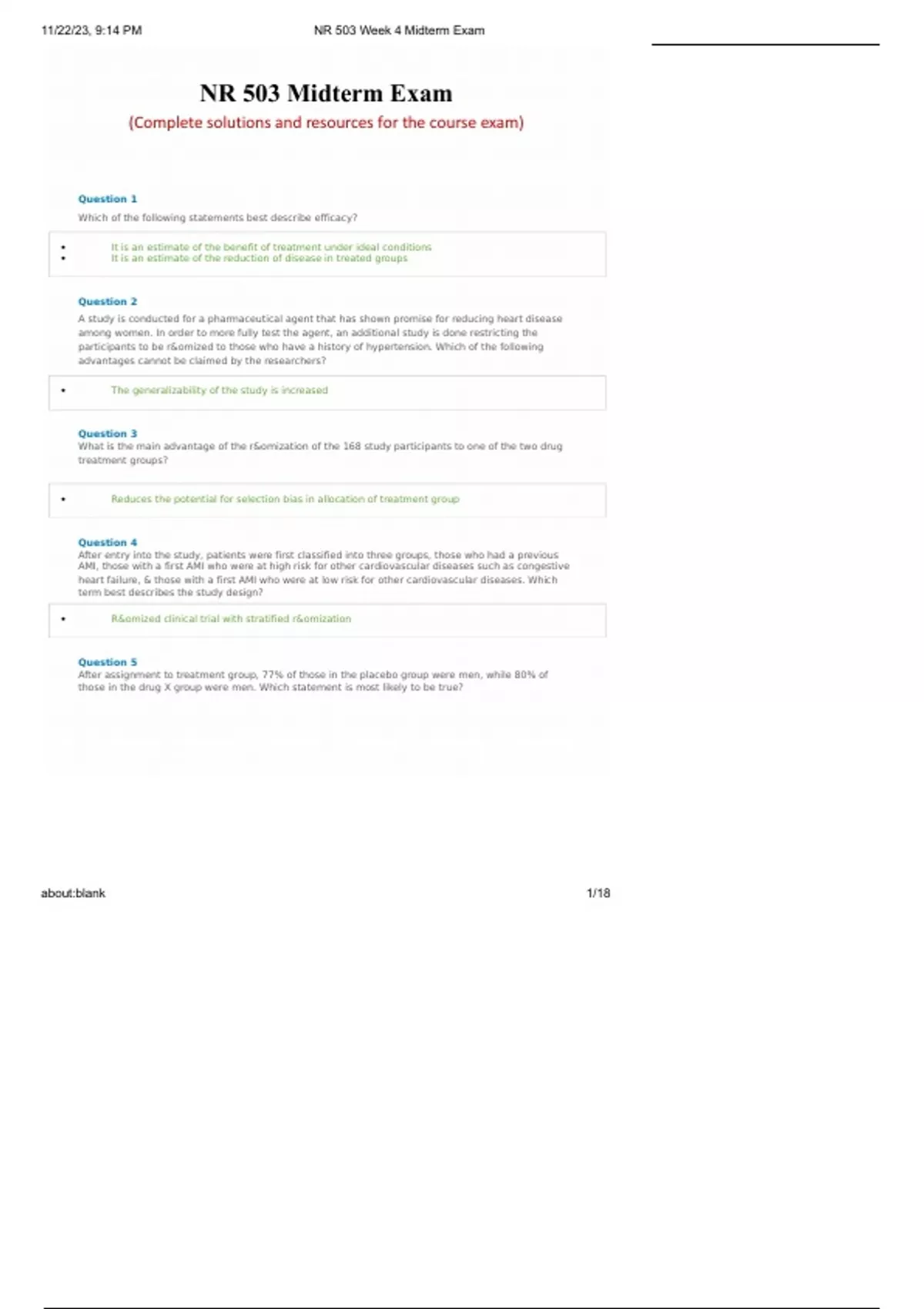 , 11/22/23, 9:14 PM NR 503 Week 4 Midterm Exam