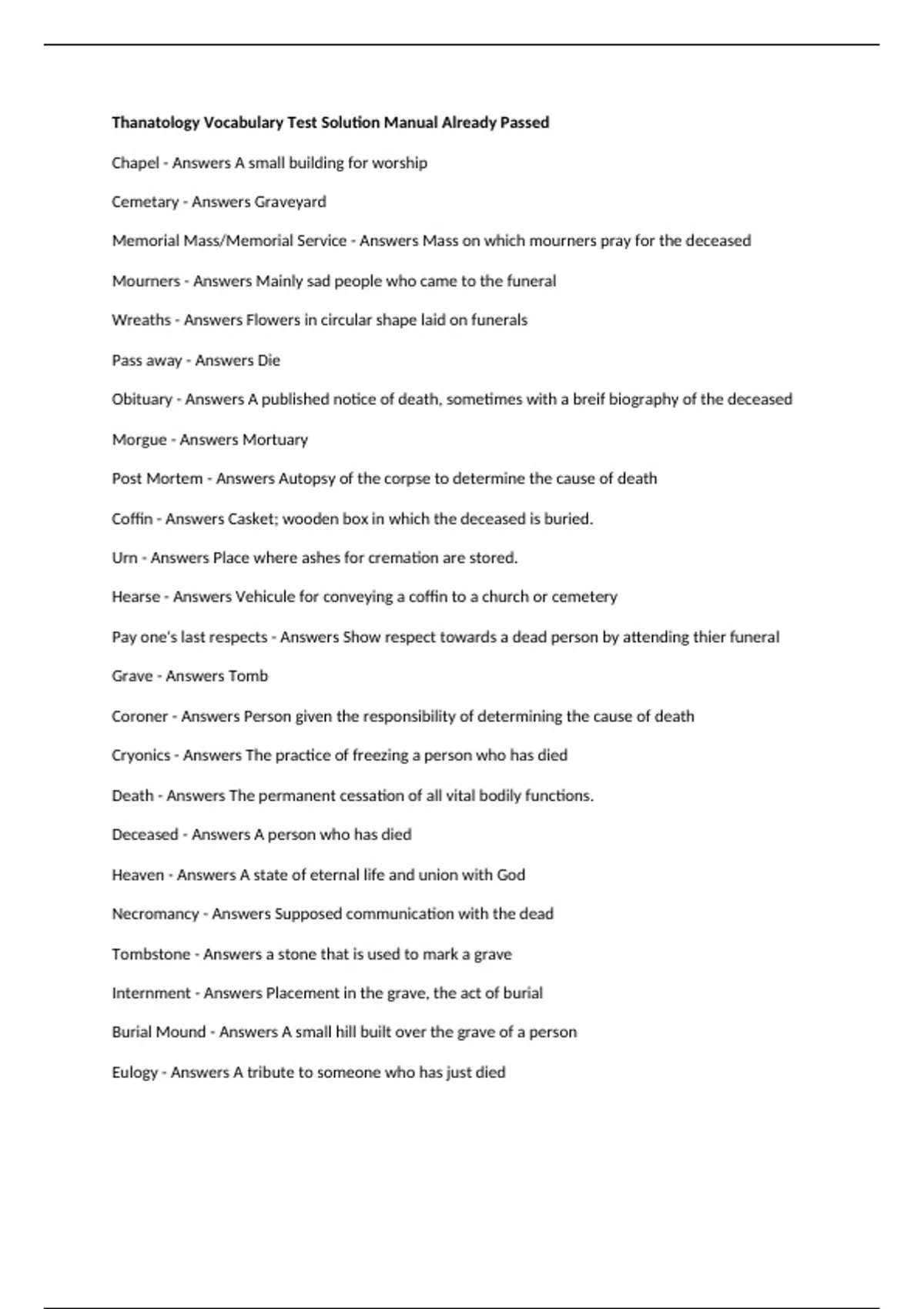 Memorial Mass/Memorial Service - Answers Mass on which mourners pray for the deceased