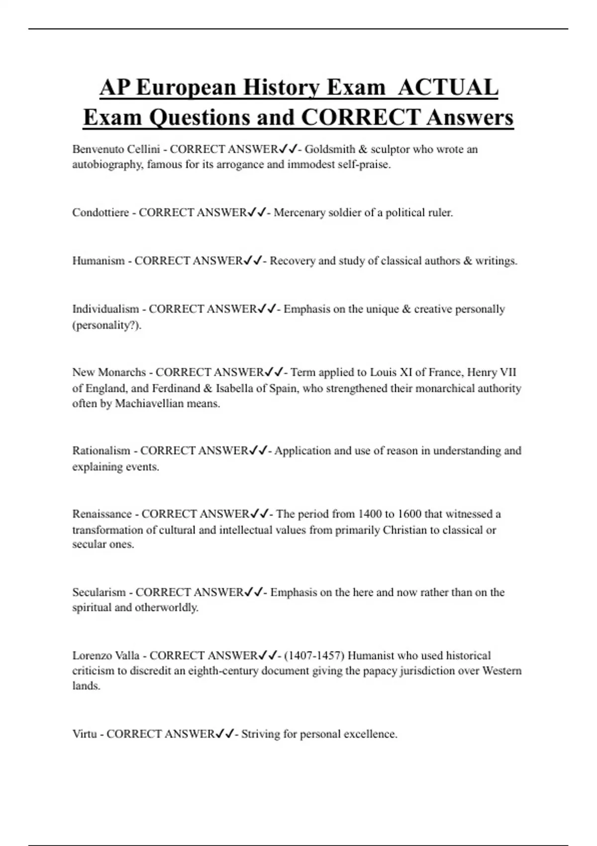 Renaissance - CORRECT ANSWER✔✔- The period from 1400 to 1600 that witnessed a