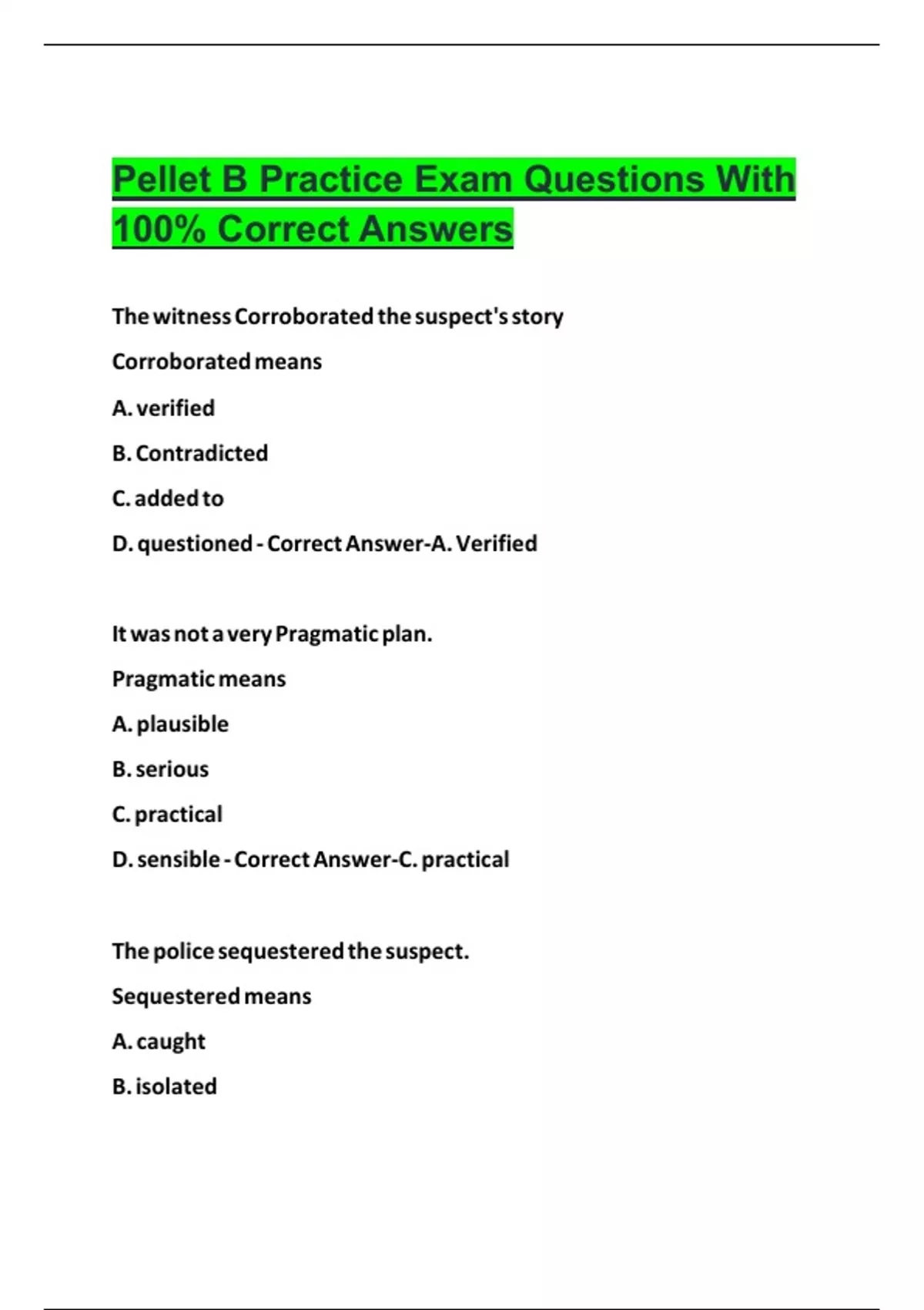 100% Correct Answers