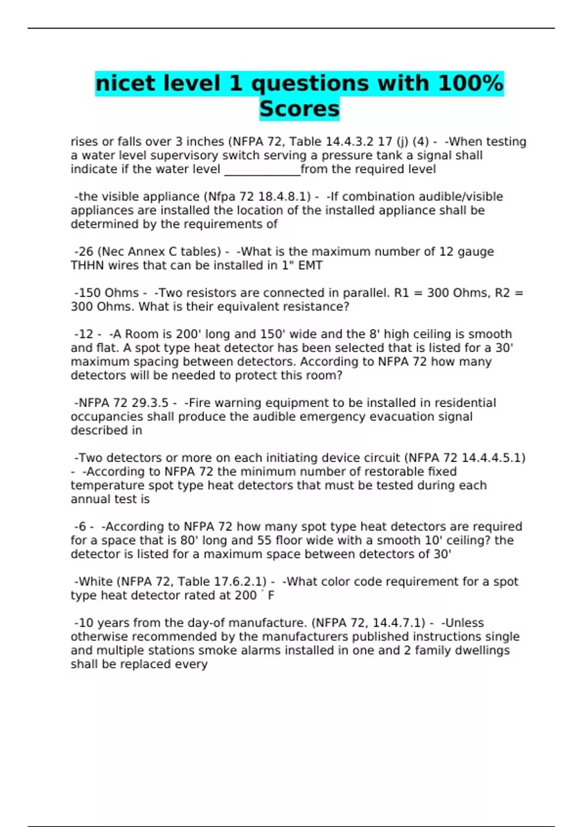 nicet level 1 questions with 100%