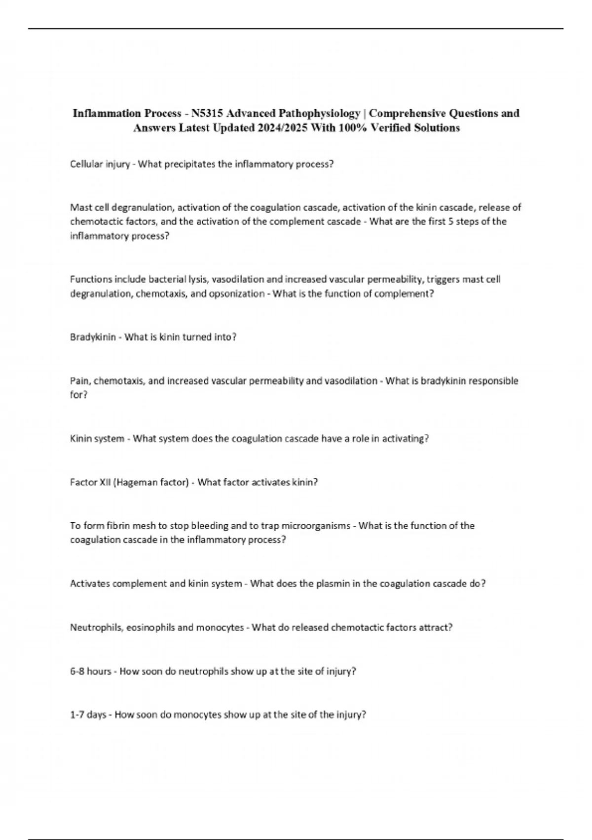 Inflammation Process - N5315 Advanced Pathophysiology | Comprehensive Questions and Answers Latest Updated 2024/2025 With 100% Verified Solutions