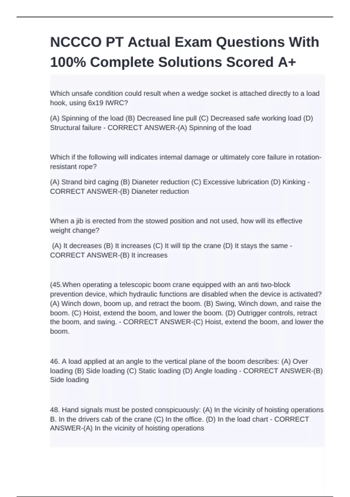 NCCCO PT Actual Exam Questions With