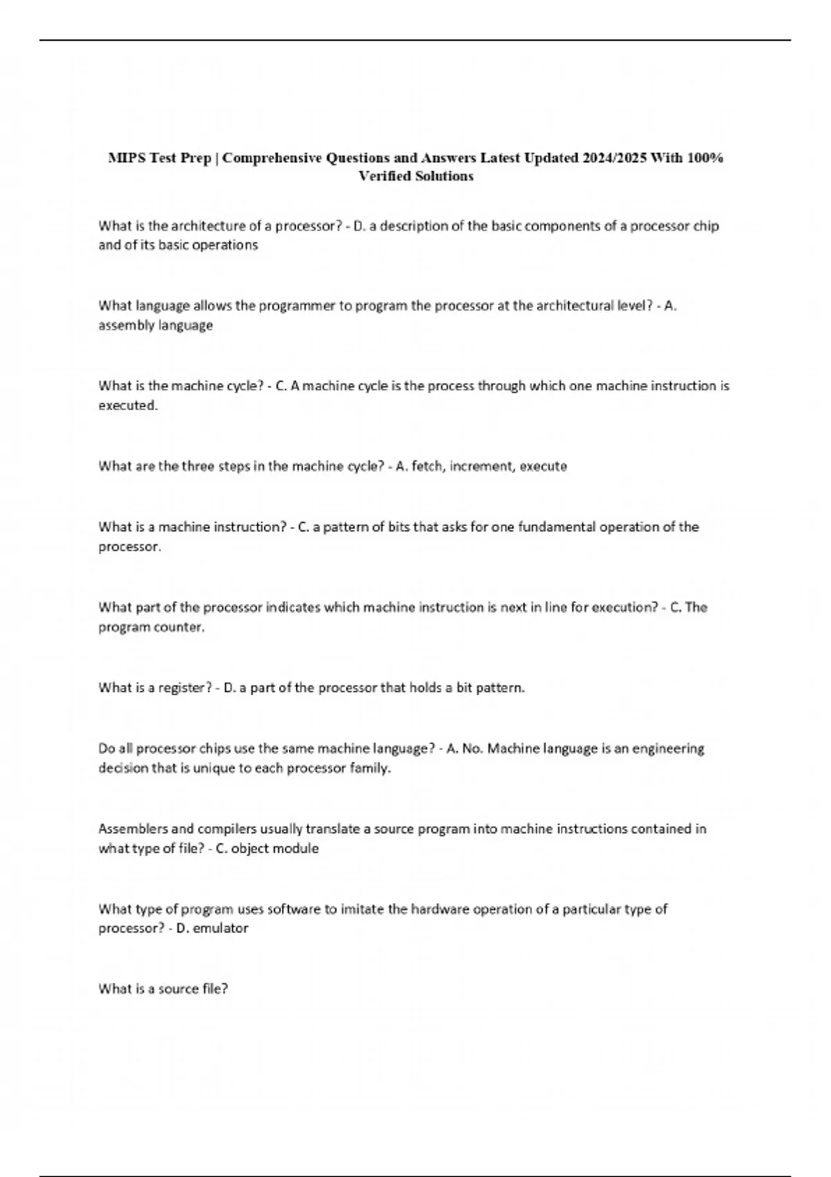 MIPS Test Prep | Comprehensive Questions and Answers Latest Updated 2024/2025 With 100% Verified Solutions