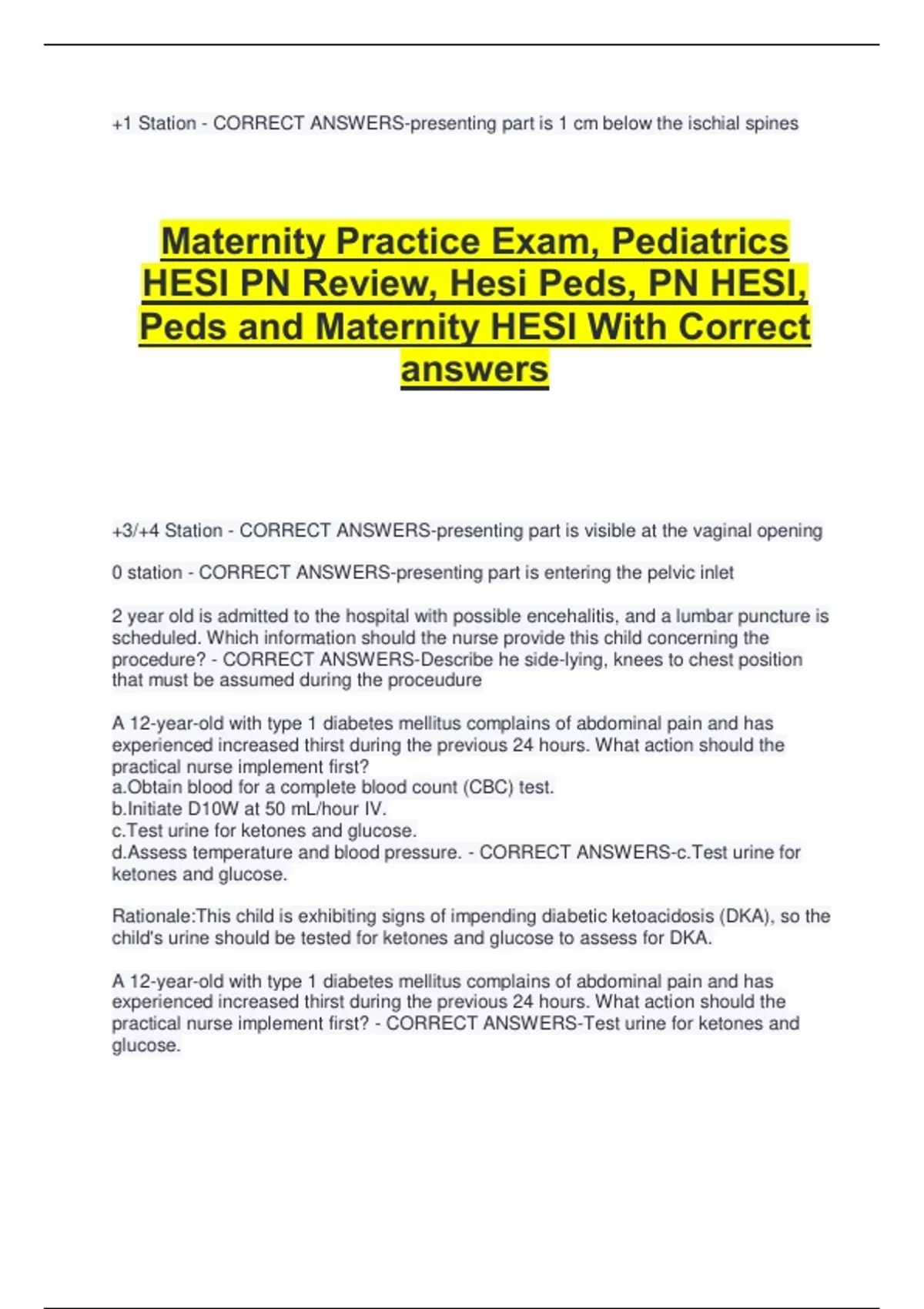 Maternity Practice Exam, Pediatrics HESI PN Review, Hesi Peds, PN HESI, Peds and Maternity HESI With Correct answersMaternity Practice Exam, Pediatrics HESI PN Review, Hesi Peds, PN HESI, Peds and Maternity HESI With Correct answersMaternity Practice Exam, Pediatrics HESI PN Review, Hesi Peds, PN HESI, Peds and Maternity HESI With Correct answersMaternity Practice Exam, Pediatrics HESI PN Review, Hesi Peds, PN HESI, Peds and Maternity HESI With Correct answersMaternity Practice Exam, Pediatrics HESI PN Review, Hesi Peds, PN HESI, Peds and Maternity HESI With Correct answers