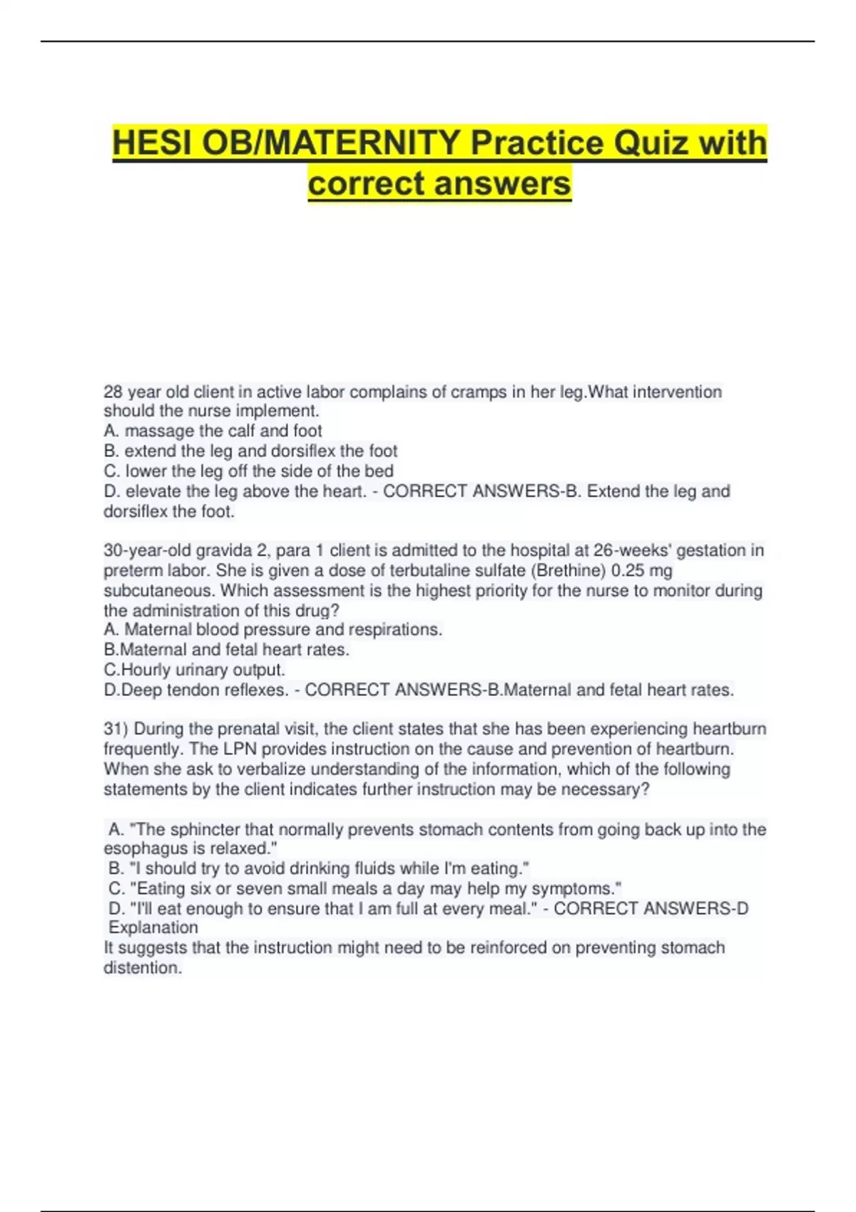 HESI OB/MATERNITY Practice Quiz with correct answerHESI OB/MATERNITY Practice Quiz with correct answerHESI OB/MATERNITY Practice Quiz with correct answerHESI OB/MATERNITY Practice Quiz with correct answerHESI OB/MATERNITY Practice Quiz with correct answer