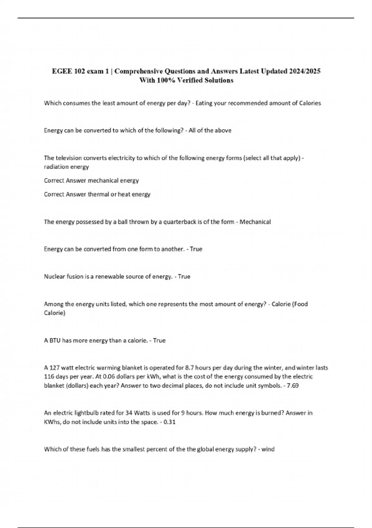 EGEE 102 exam 1 | Comprehensive Questions and Answers Latest Updated 2024/2025 With 100% Verified Solutions