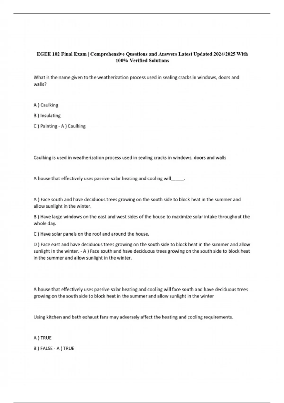 EGEE 102 Final Exam | Comprehensive Questions and Answers Latest Updated 2024/2025 With 100% Verified Solutions