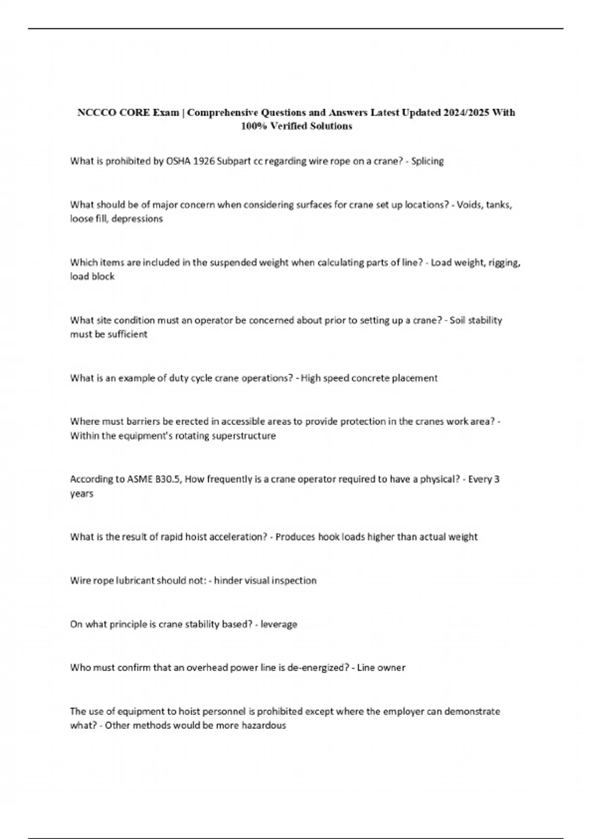 NCCCO CORE Exam | Comprehensive Questions and Answers Latest Updated 2024/2025 With 100% Verified Solutions