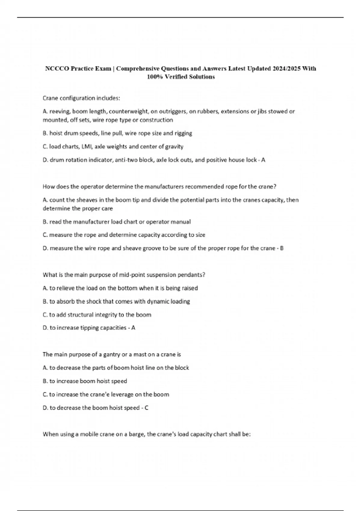 NCCCO Practice Exam | Comprehensive Questions and Answers Latest Updated 2024/2025 With 100% Verified Solutions