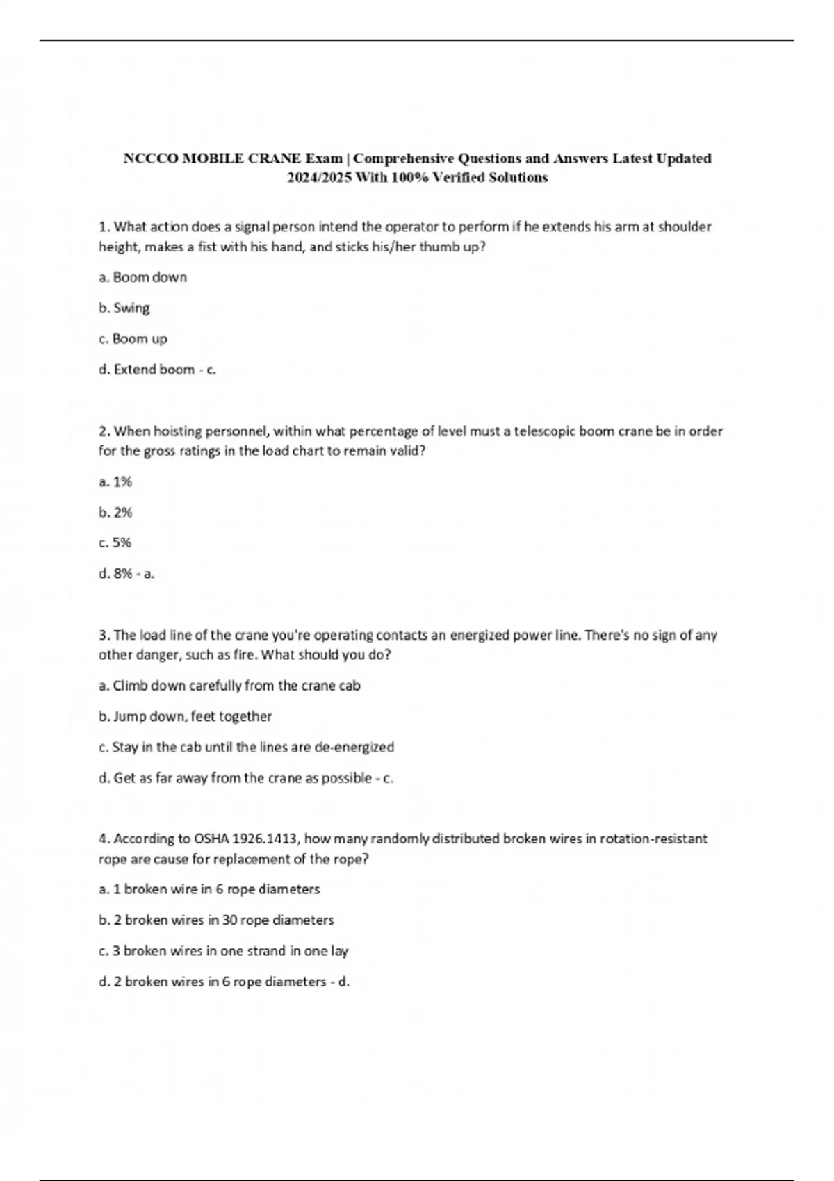 NCCCO MOBILE CRANE Exam | Comprehensive Questions and Answers Latest Updated 2024/2025 With 100% Verified Solutions
