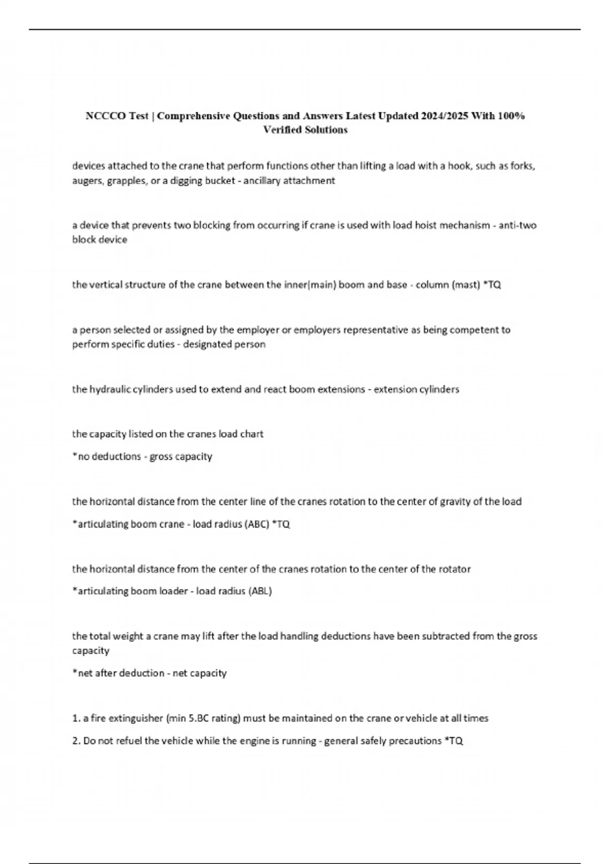 NCCCO Test | Comprehensive Questions and Answers Latest Updated 2024/2025 With 100% Verified Solutions