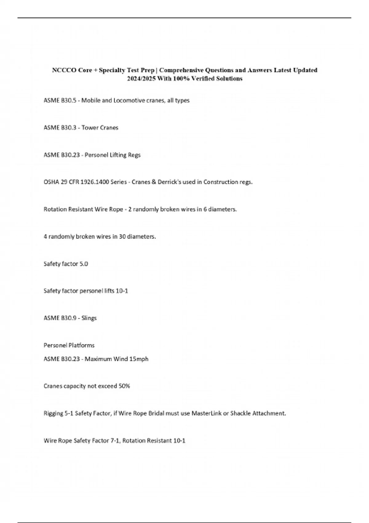 NCCCO Core + Specialty Test Prep | Comprehensive Questions and Answers Latest Updated 2024/2025 With 100% Verified Solutions