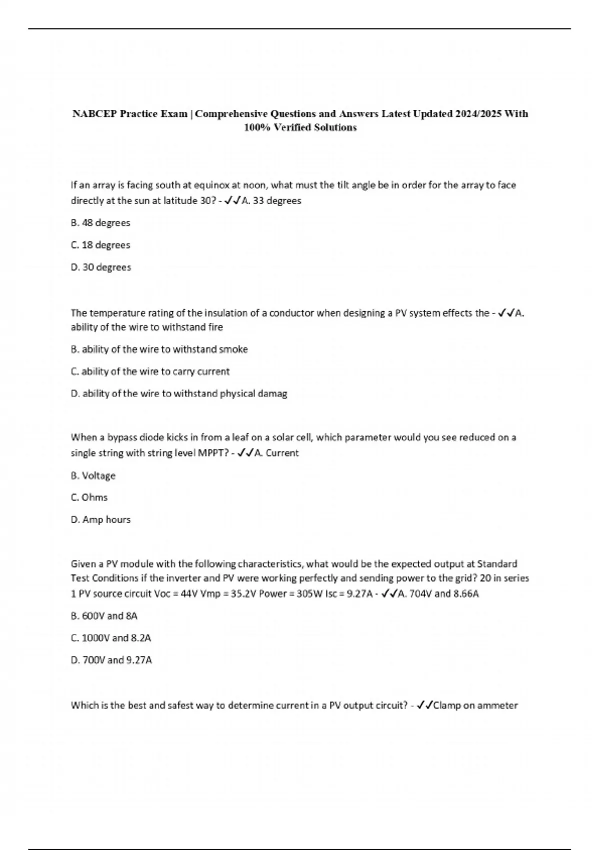 NABCEP Practice Exam | Comprehensive Questions and Answers Latest Updated 2024/2025 With 100% Verified Solutions