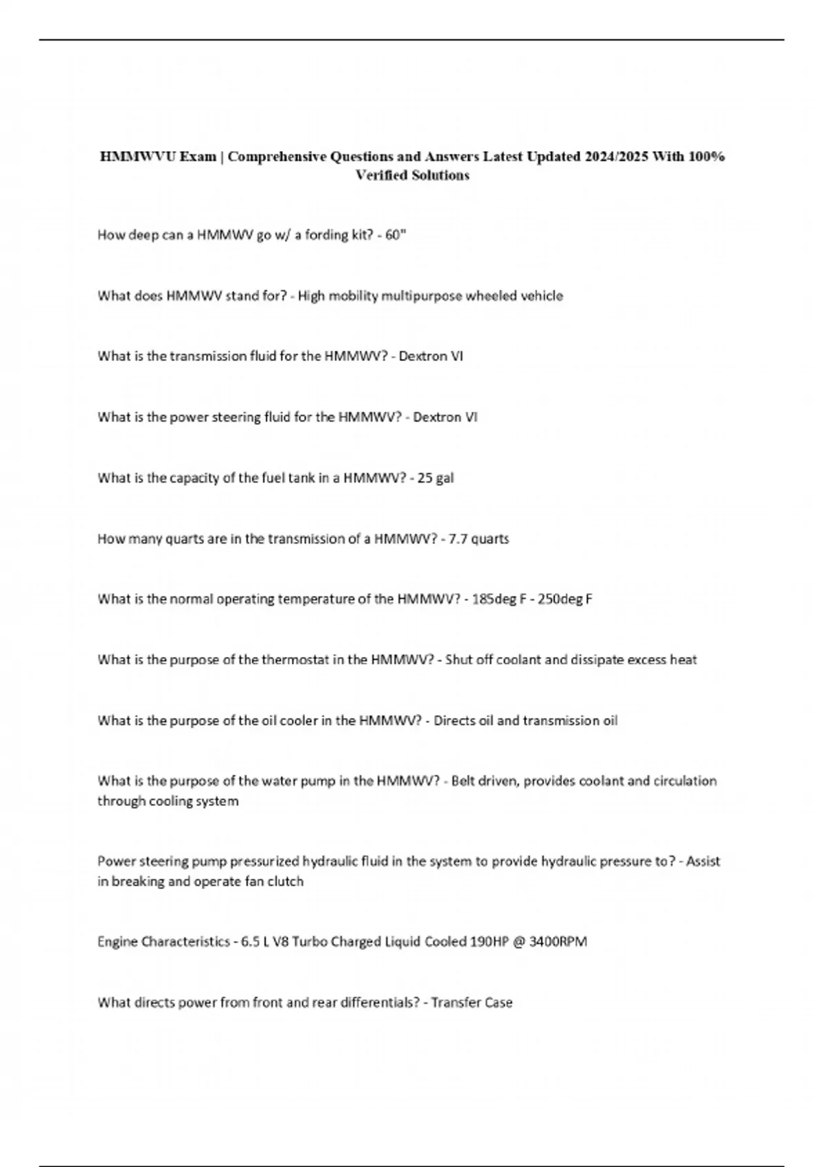 HMMWVU Exam | Comprehensive Questions and Answers Latest Updated 2024/2025 With 100% Verified Solutions