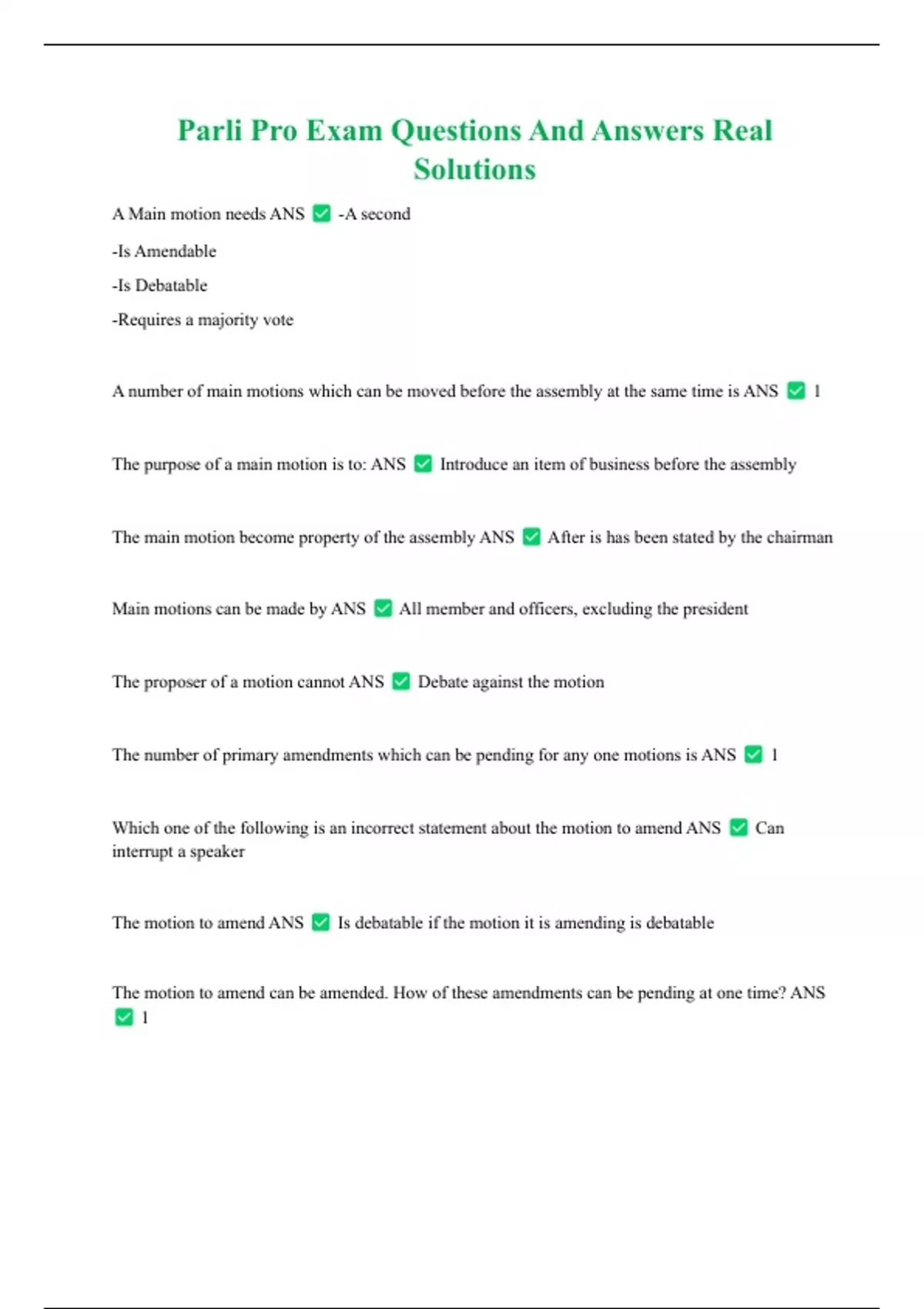 A Main motion needs ANS -A second