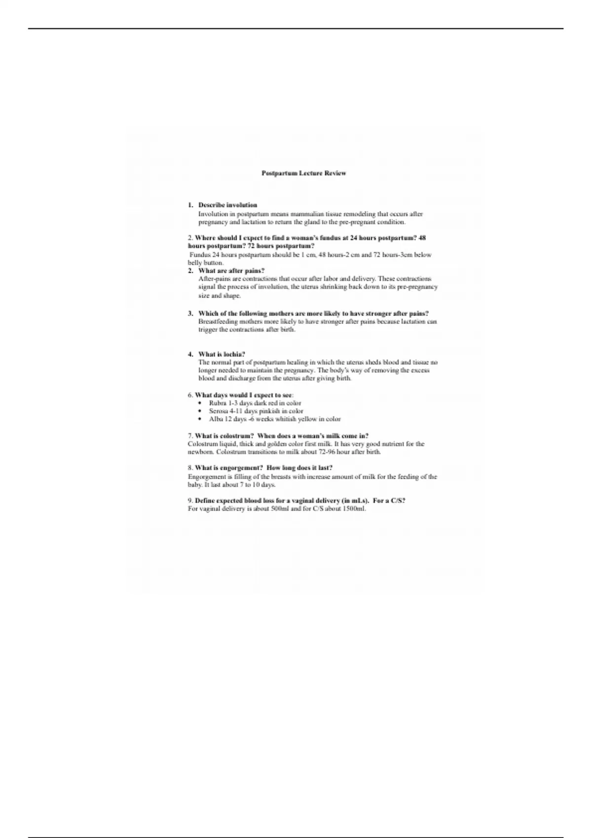 , 10. Describe the expected changes in vital signs in the immediate postpartum period