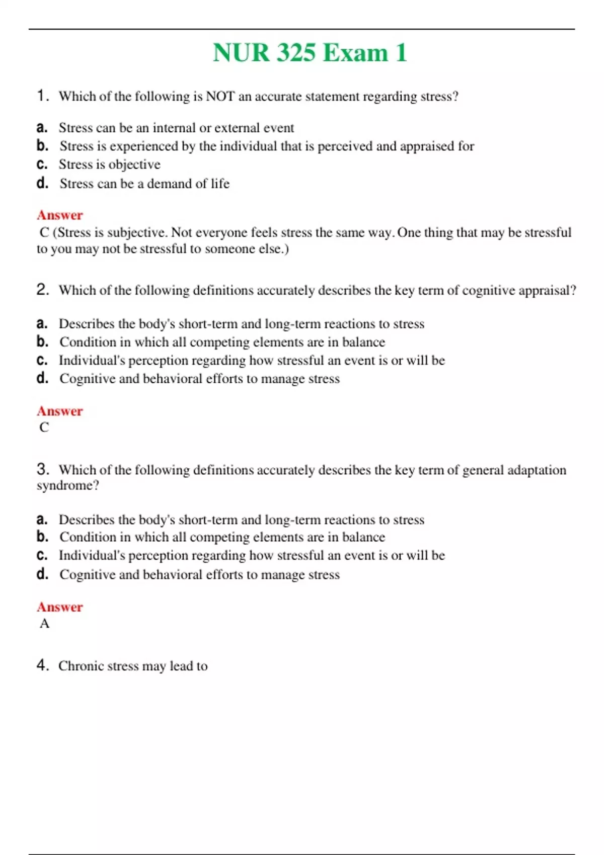 NUR 325 ( LATEST 2024 / 2025 ) EXAM 1 | GUARANTEED A+ ACTUAL QUESTIONS AND ANSWERS