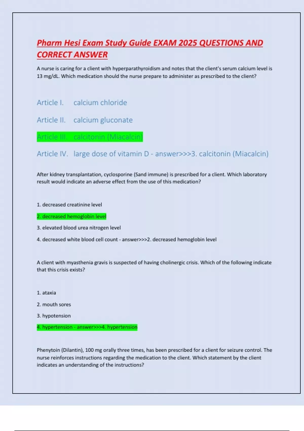 Pharm Hesi Exam Study Guide EXAM 2025 QUESTIONS AND