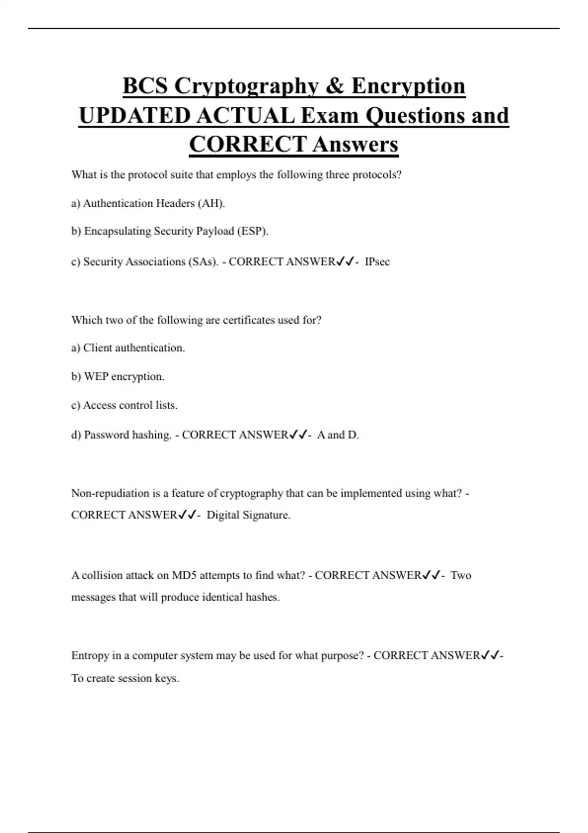 CORRECT Answers