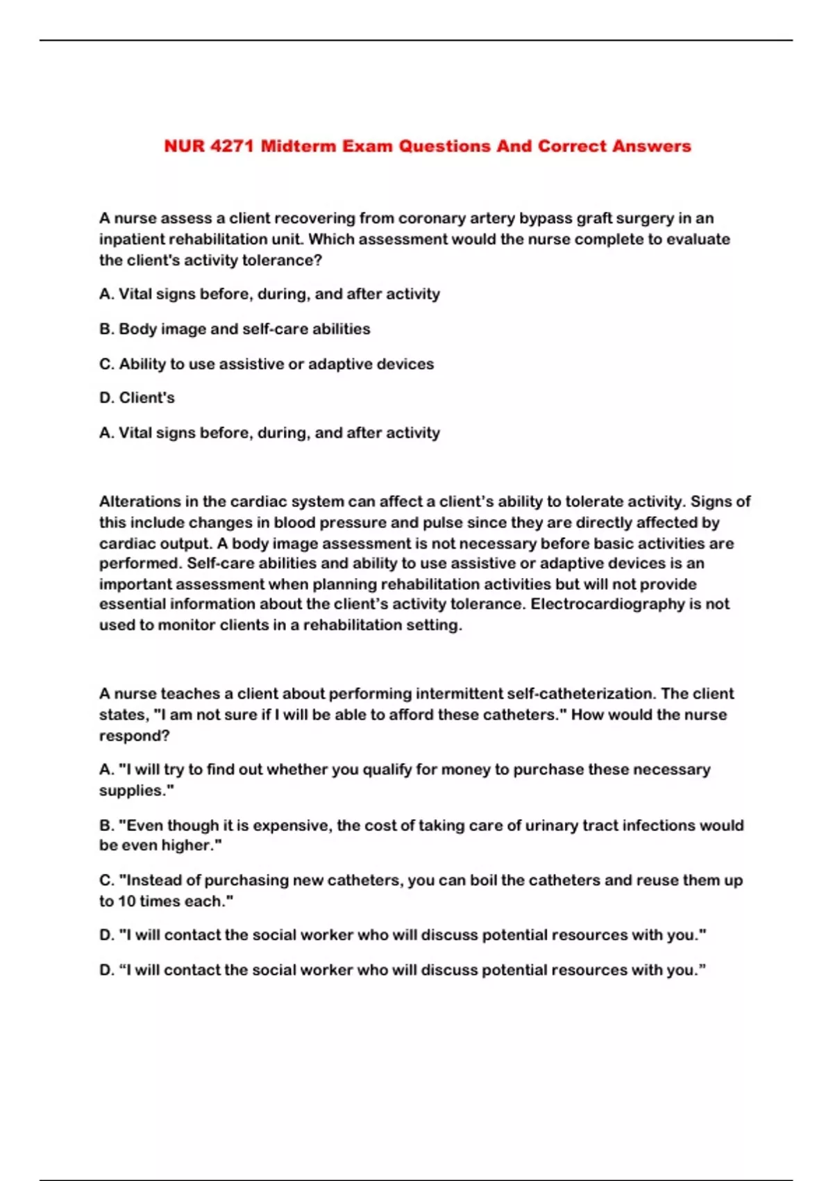 NUR 4271 Midterm Exam Questions And Correct Answers