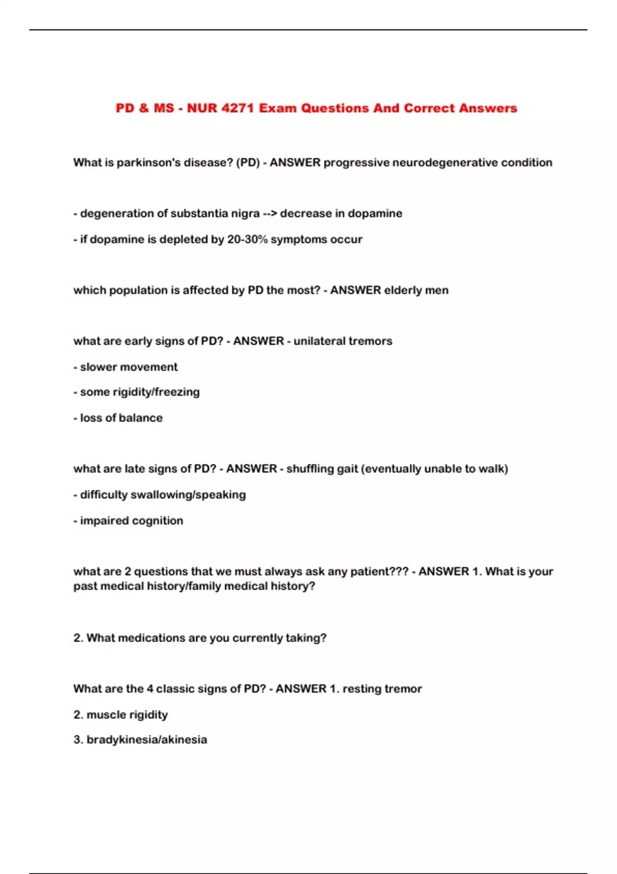 PD & MS - NUR 4271 Exam Questions And Correct Answers