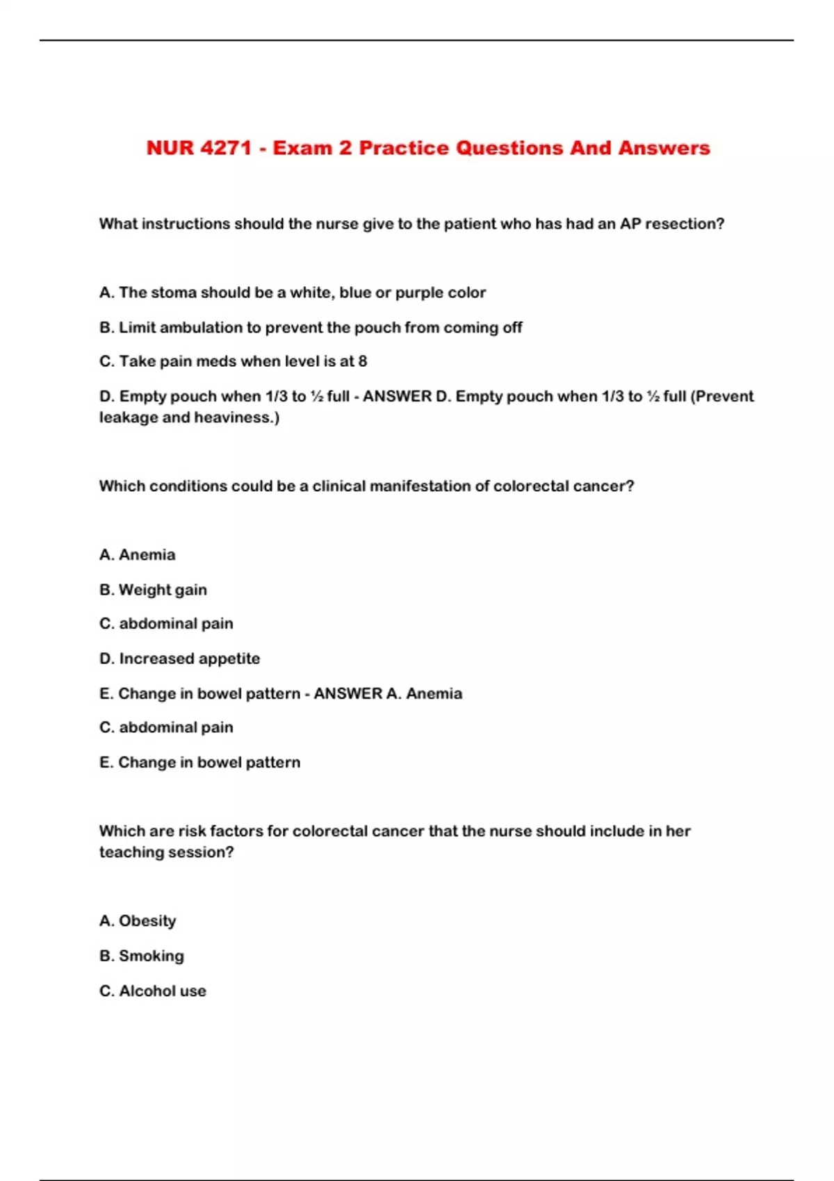 NUR 4271 - Exam 2 Practice Questions And Answers
