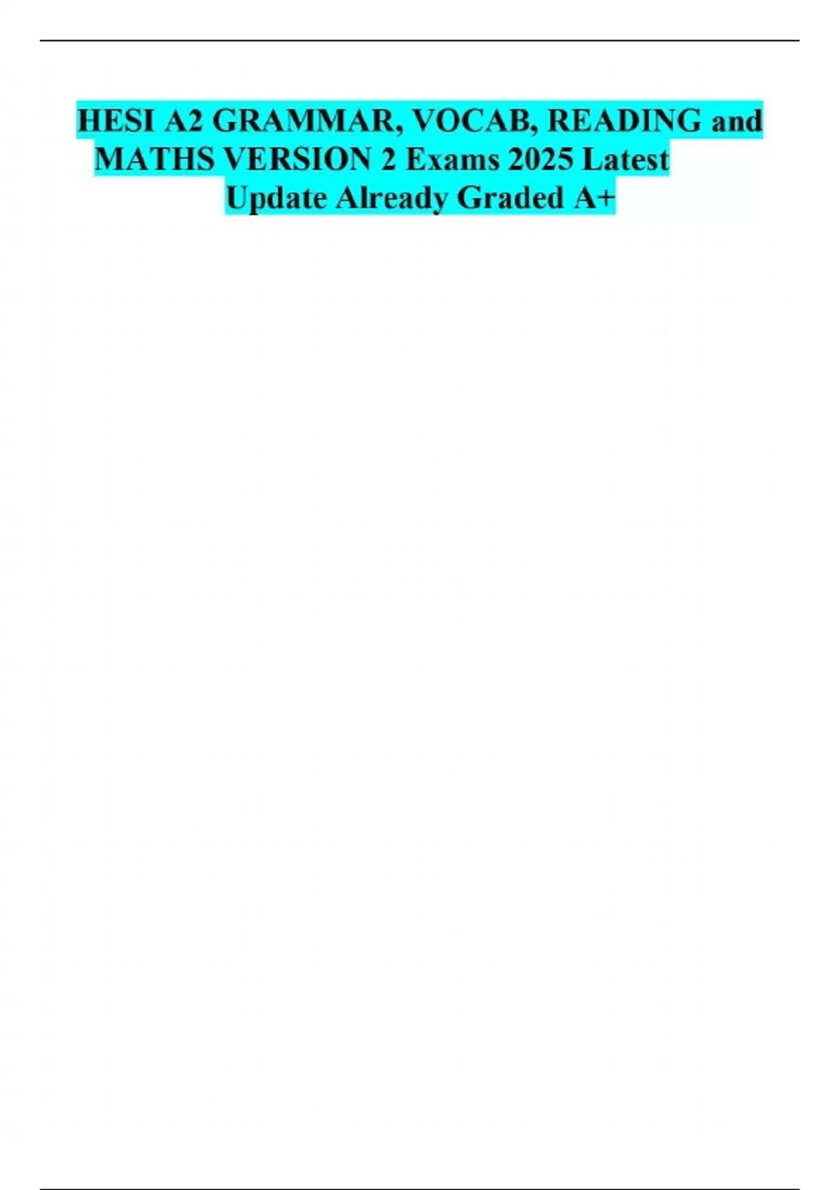 HESI A2 GRAMMAR, VOCAB, READING and MATHS VERSION 2 Exams 2025 Latest Update Already Graded A+