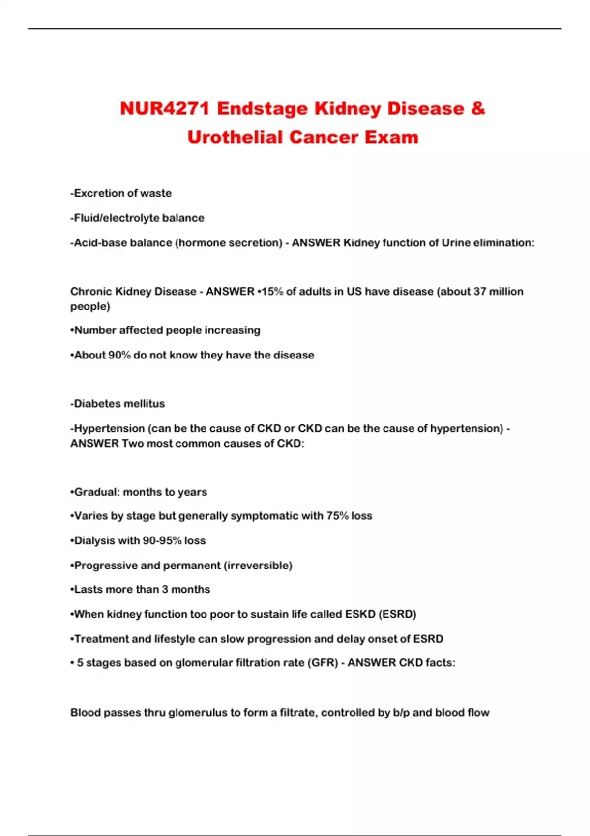 Chronic Kidney Disease - ANSWER •15% of adults in US have disease (about 37 million