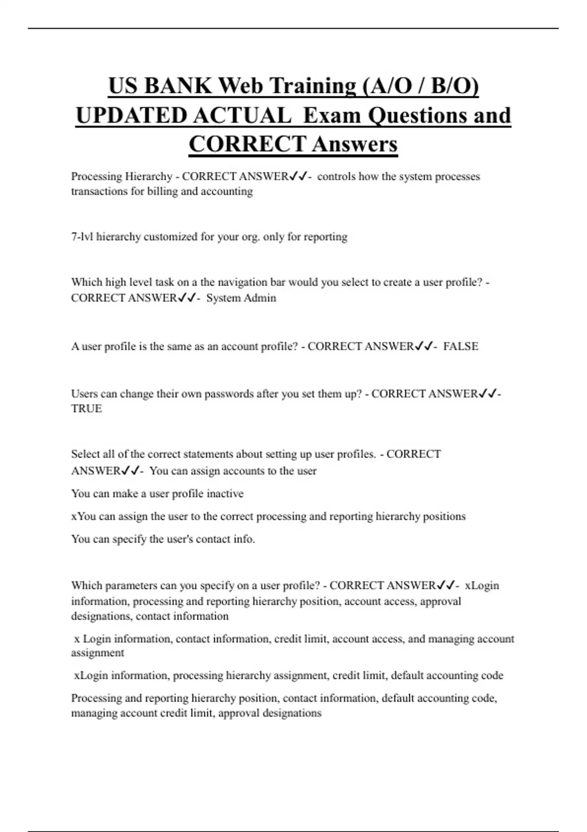 A user profile is the same as an account profile? - CORRECT ANSWER✔✔- FALSE