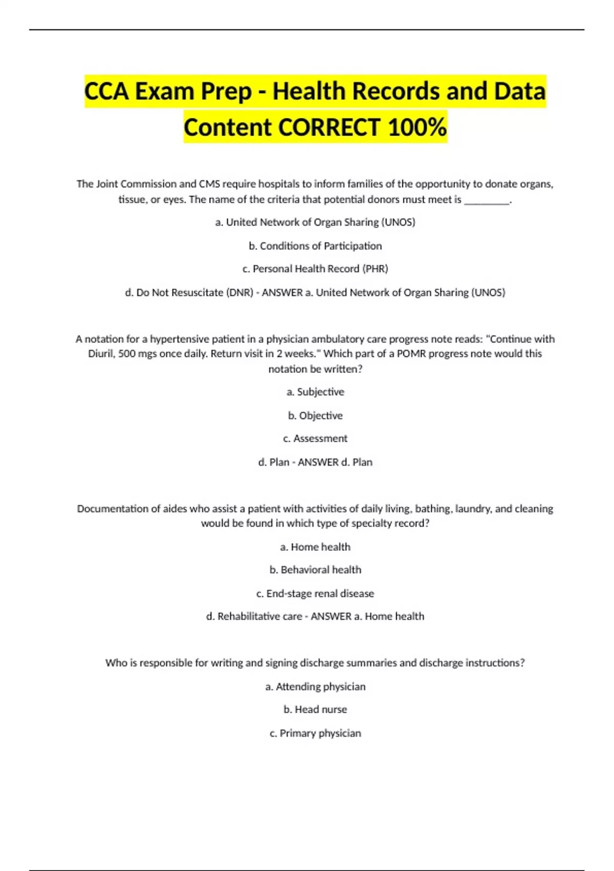 ANSWER c. Document the physician's instructions to other parties involved in providing care to a patient