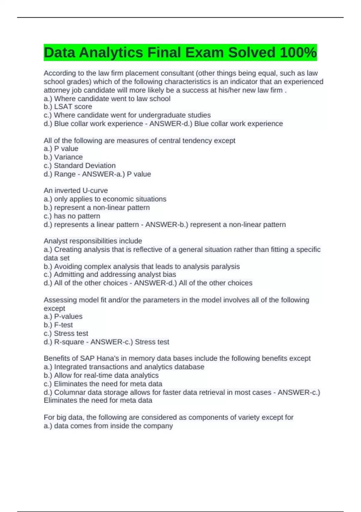 Data Analytics Final Exam Solved 100%