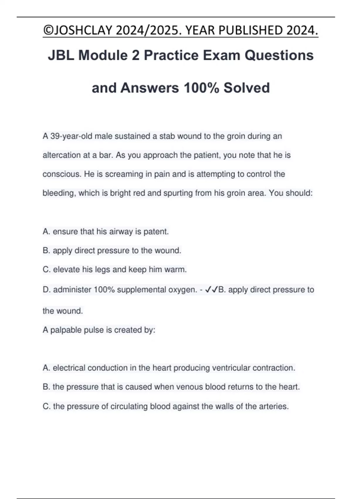 D. administer 100% supplemental oxygen. - ✔✔B. apply direct pressure to