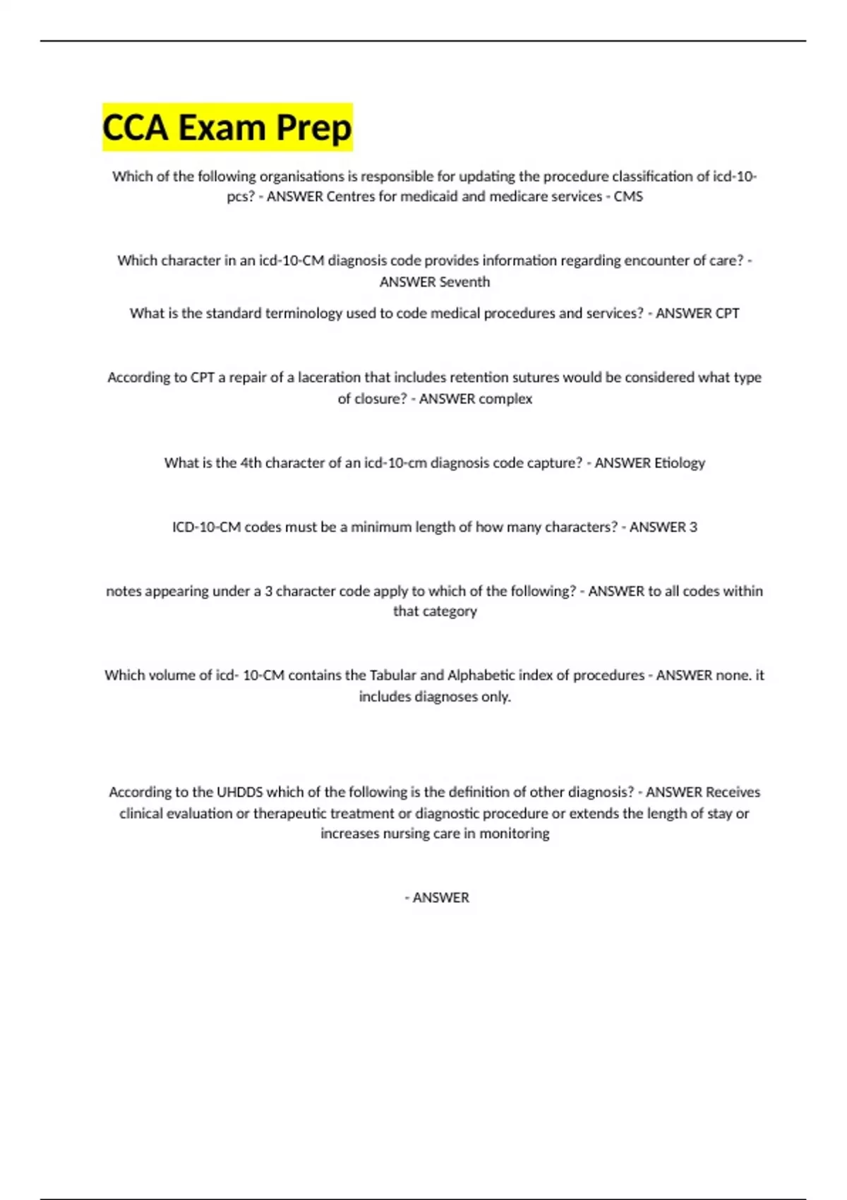notes appearing under a 3 character code apply to which of the following? - ANSWER to all codes within